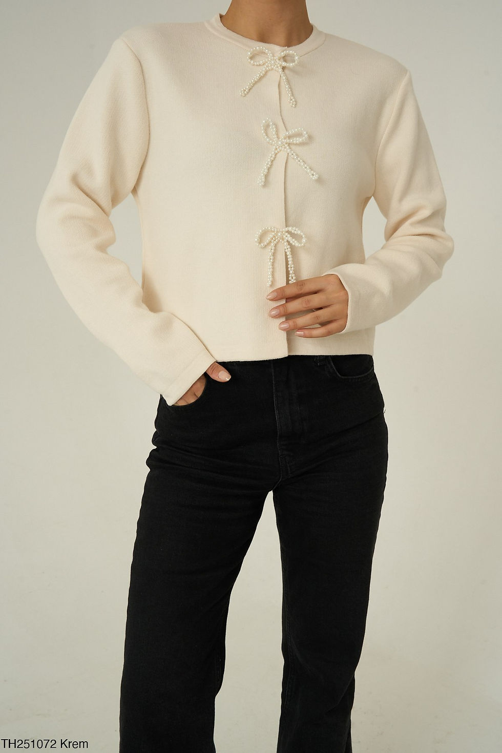 Polo Yaka Düğmeli Yumuşak Triko Hırka-Ekru